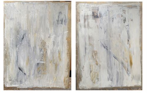 Pair on Board, Metallic gold with acrylic and gouache on board created with Japanese wedge.